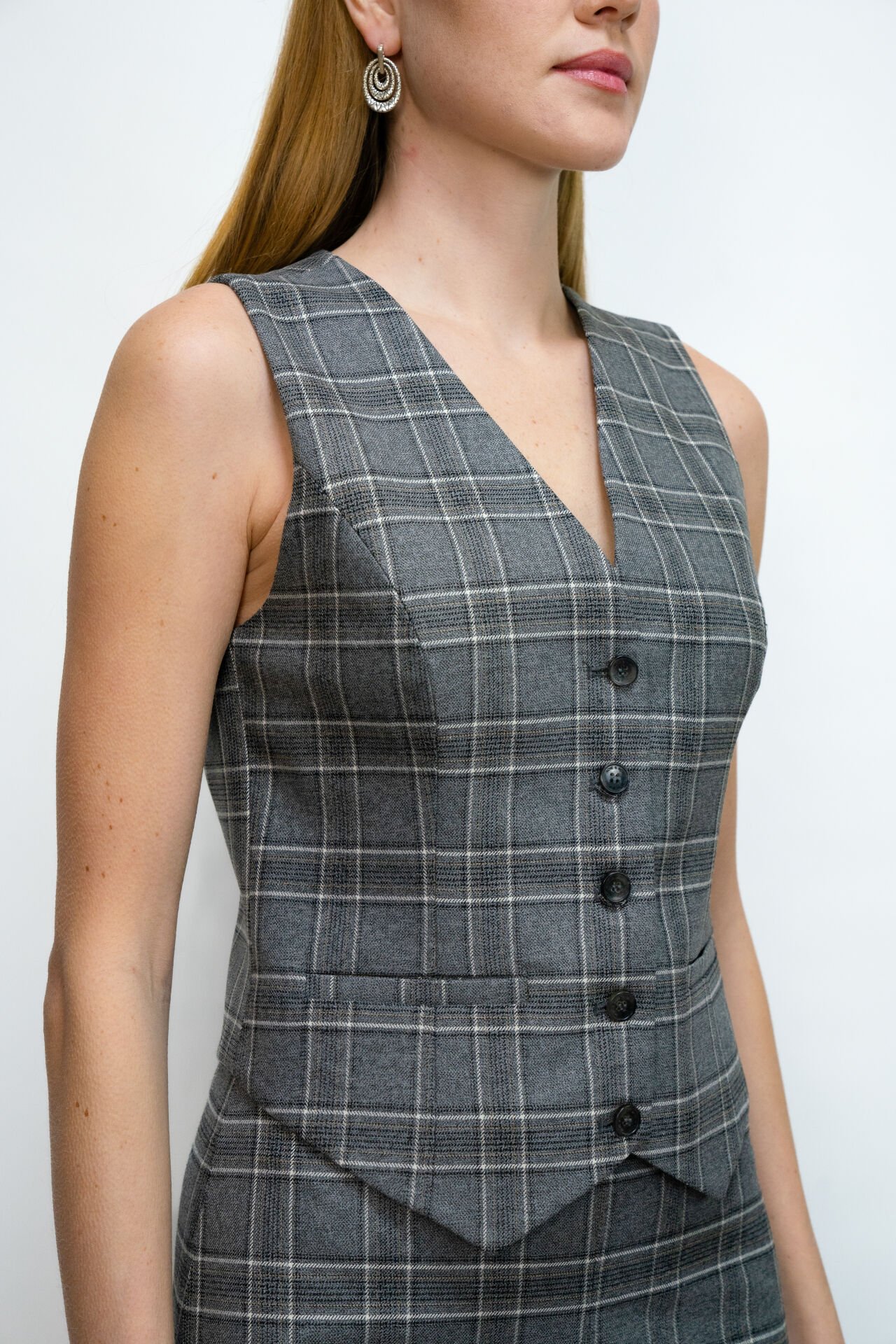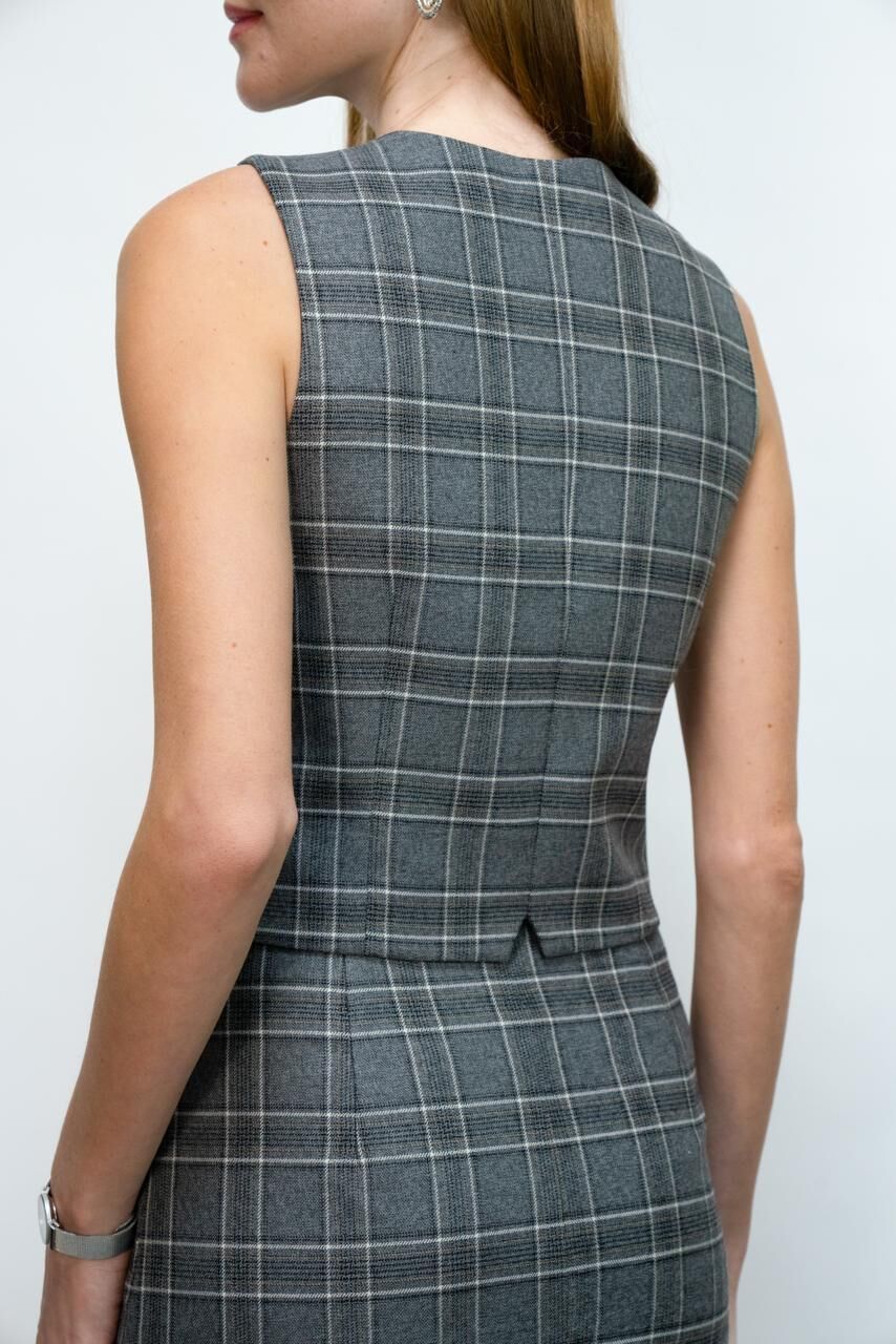Kooshi Gri Ekose Yelek